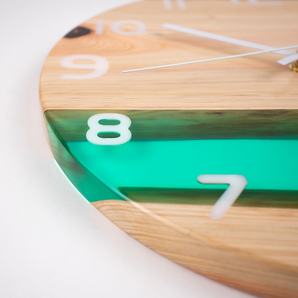 自然が生み出した木のぬくもりと、透明感あふれるレジンの輝きが融合した、世界に一つだけのレジンウッド時計です。
