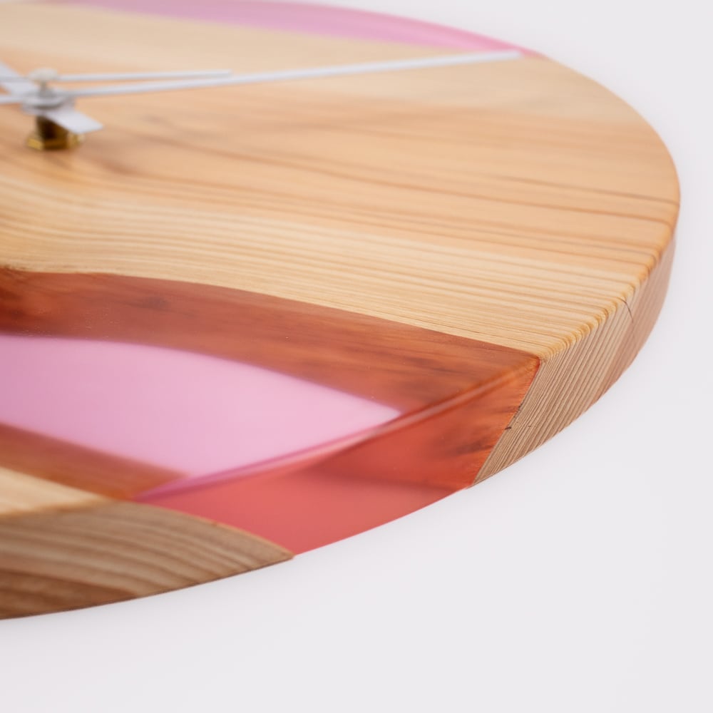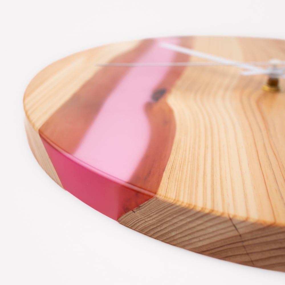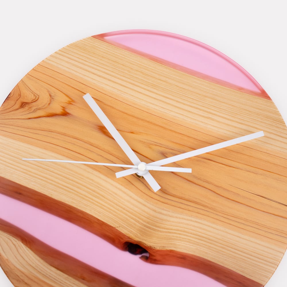 自然が生み出した木のぬくもりと、透明感あふれるレジンの輝きが融合した、世界に一つだけのレジンウッド時計です。